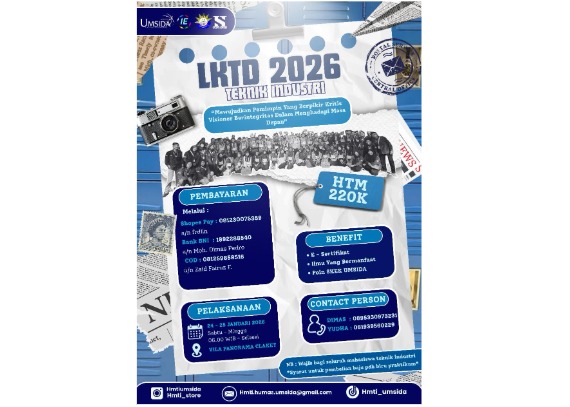 Masa-masa menjadi mahasiswa baru angkatan 2025 hanya terjadi sekali seumur hidup. LKTD 2026 adalah gerbang pertama kalian untuk diakui sebagai bagian dari keluarga besar Teknik Industri UMSIDA yang solid. Jangan biarkan kesempatan ini lewat begitu saja, apalagi mengingat statusnya yang wajib untuk syarat kepemilikan PDH Biru Praktikum.
